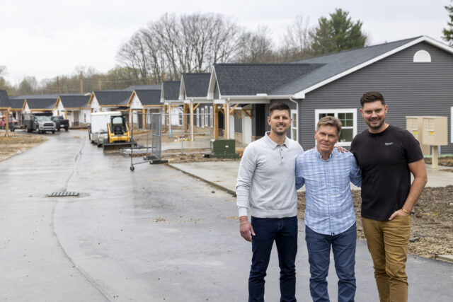 Christian Ohman (left), Anderson Ohman Sr. (center), and Anderson Ohman Jr. (right), partners in Pierce Street Properties, a subsidiary of Ohman Family Living at Briar, pictured in The Cottages, a new independent living project, on April 24, 2025/Photo courtesy of Ohman Family Living