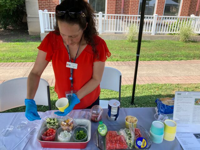 On to the next booth, also set up by the Health Department.  This one was emphasizing nutrition and has many easy and inexpensive recipe and informational pamplets available.  They also had a Make it Yourself Salsa bar set up for free samples. Yummo!
