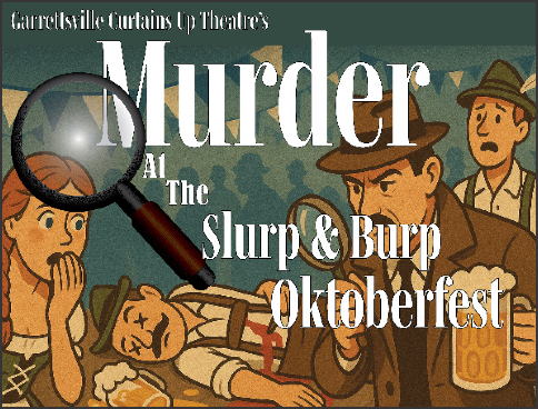 This year’s production, presented by Garrettsville’s own Curtains Up Theatre, is titled “Murder at the Slurp & Burp Oktoberfest”—and it promises plenty of twists, turns, and laughs. Guests will find themselves right in the middle of the action as they work alongside the cast to solve the case. Can you uncover the culprit before dessert is served?